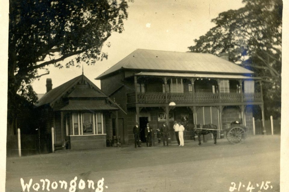 The Cricketers Arms Hotel in the late 1890s. From the collections of Wollongong City Libraries and the Illawarra Historical Society – P02/P02897.