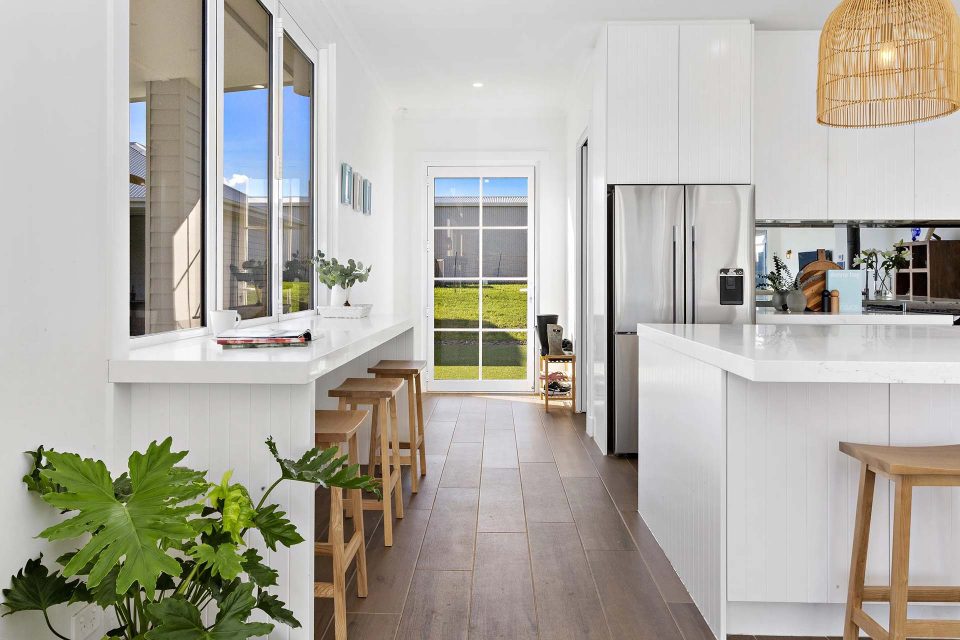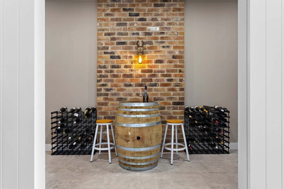 The home is characterised by exceptional craftsmanship, soaring vaulted ceilings, floor-to-ceiling glass and a sun-drenched open-plan living area that draws the landscape inside. This space also includes a high-end kitchen complete with a butler’s pantry.