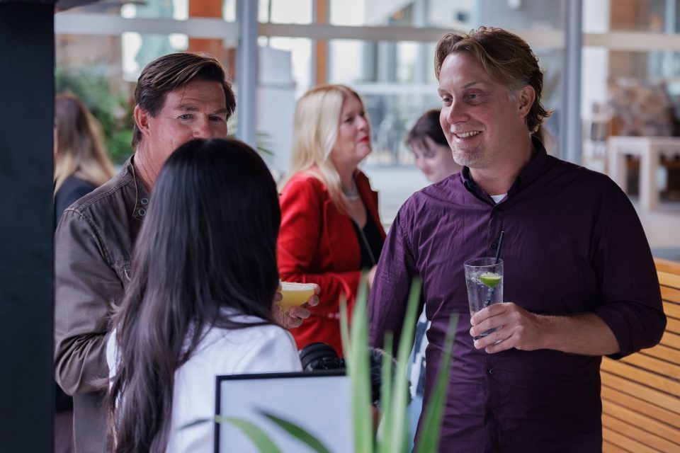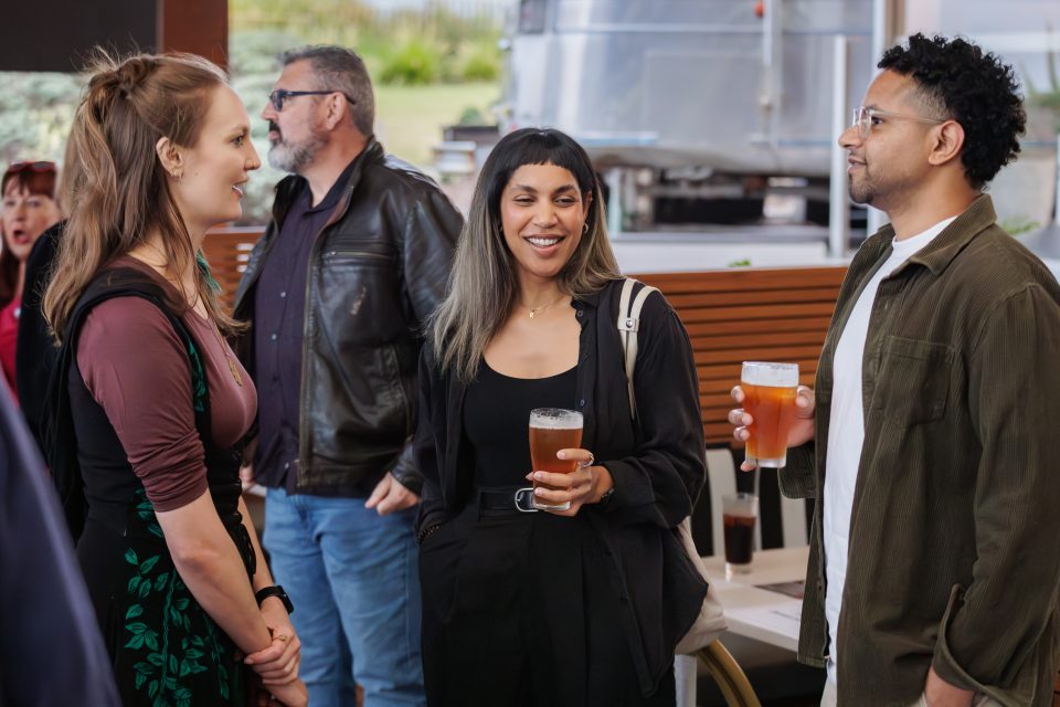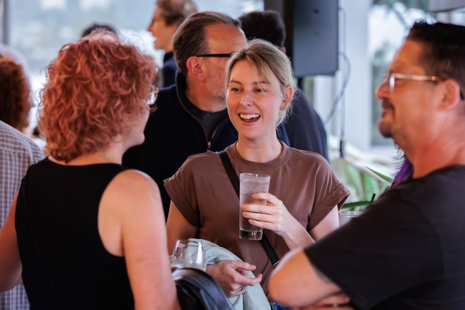 (Left to right) Screen Illawarra’s Juliet Scrine, Tony Barea, Dr Janys Hayes and Nick Bolton, BirdWatcher writer Vlad Zokitch, and Screen Illawarra’s Ashleigh Murray and Lauren Mercovich at the Screen Illawarra networking event, where the judges for the 2025 Creative Wollongong Short Film Competition were announced. Photos: Matt Houston IronBark Photography.