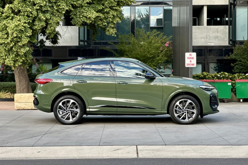 Mine, with its four-cylinder turbo-diesel mild-hybrid and vaguely sporty ‘S-Line’ badges, starts at $97,600. But add in metallic ‘District Green’ paint, 20-inch wheels, a “black exterior package” and privacy glass, and you’re paying $103,000.