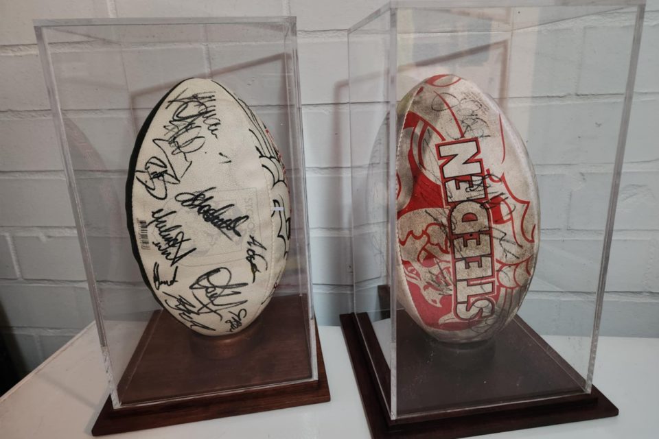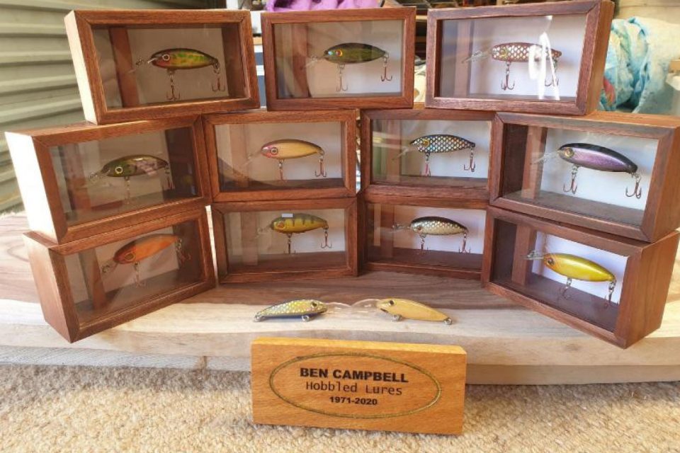 “My early jobs were small sealed face boxes with a glass/acrylic lens that I mounted collectible sporting items in, including old Australian timber fishing lures — some worth over $1000 — hole-in-one golf balls, three- and five-wicket cricket balls, team-signed footballs, and family mementos,” he said.
