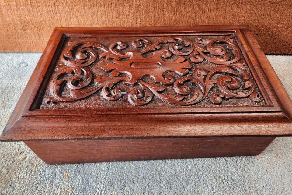 What began as small handcrafted boxes has evolved into an impressive range of cutting boards, jewellery boxes with mirrors inside the lid, keepsake boxes, urns for pets and family members, and unusual custom commissions.