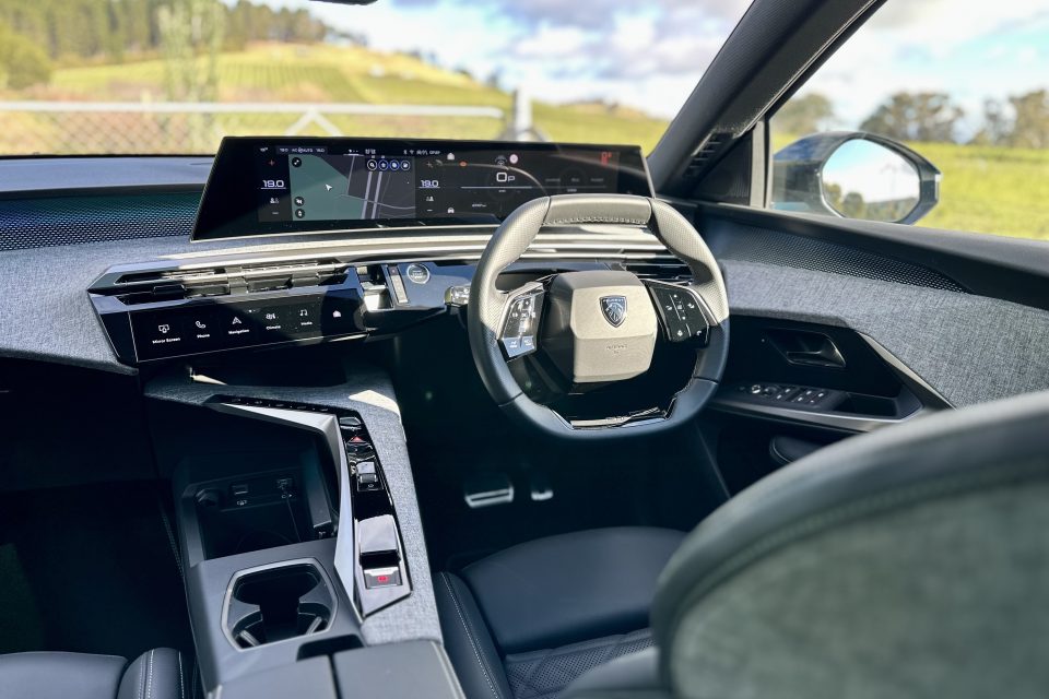 Inside, there are numerous patterns and textures at play, but by far the most unusual arrangement is how Peugeot continues to mount the steering wheel under the dashboard.