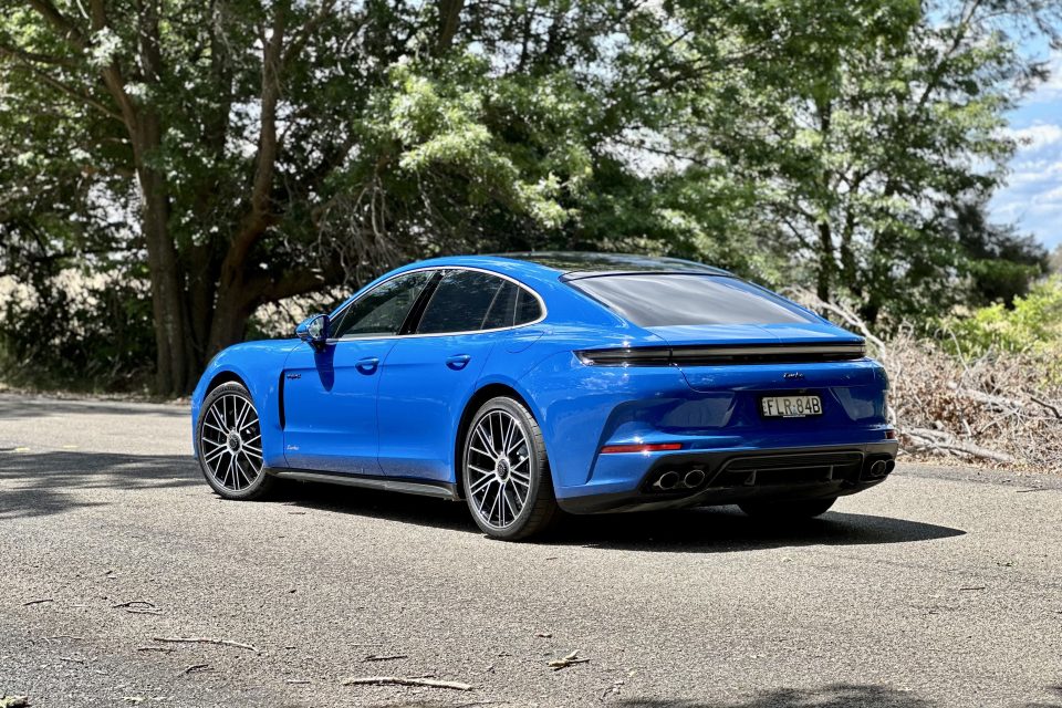 At low speeds, the rear wheels are turning opposite to the fronts to make the Panamera easier to manoeuvre. Photo: James Coleman.