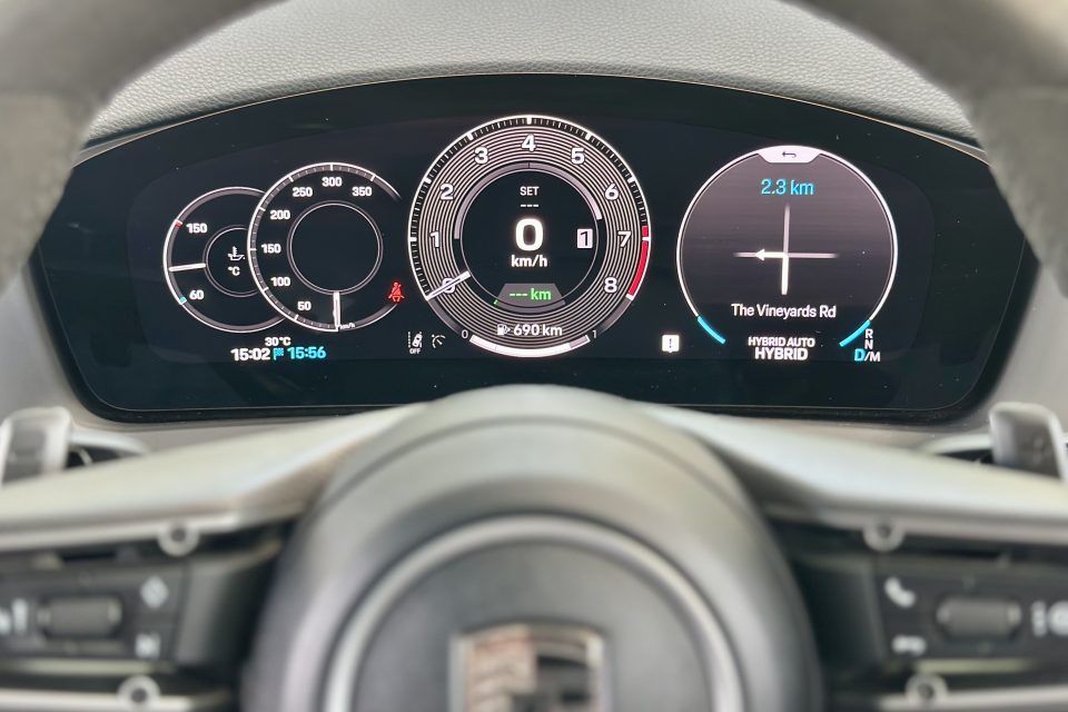 As a plug-in hybrid, it’ll also do about 90 kilometres on the battery alone. And that’s not optimistic marketing – I managed to drive from Porsche’s Sydney dealership to Pheasants Nest at highway speed without waking the engine.