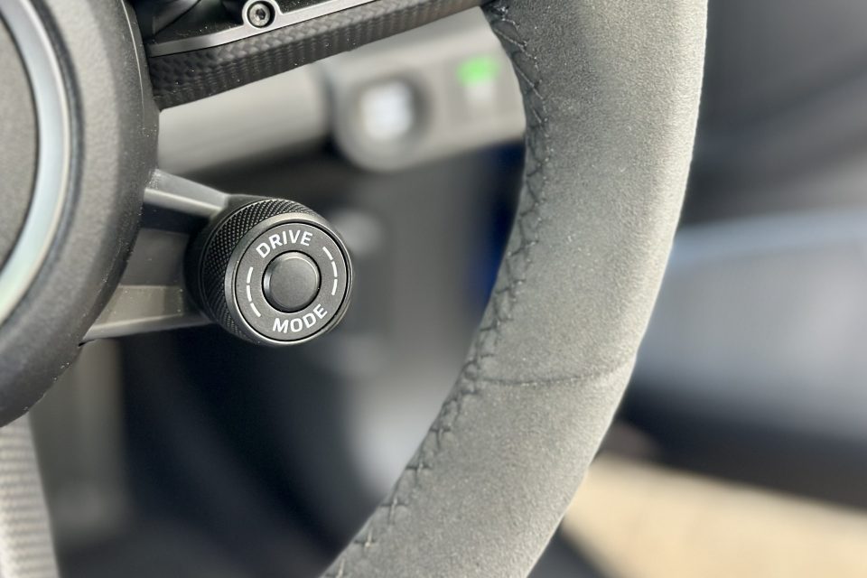 All of this happens in milliseconds. The result is a car that’s supremely comfortable yet razor-sharp precise. The steering is spot on, the rear follows the front with eerie obedience and the grip is outrageous. It feels like a two-door and half its weight. (Doubtless, the four-wheel steering helps here too.)