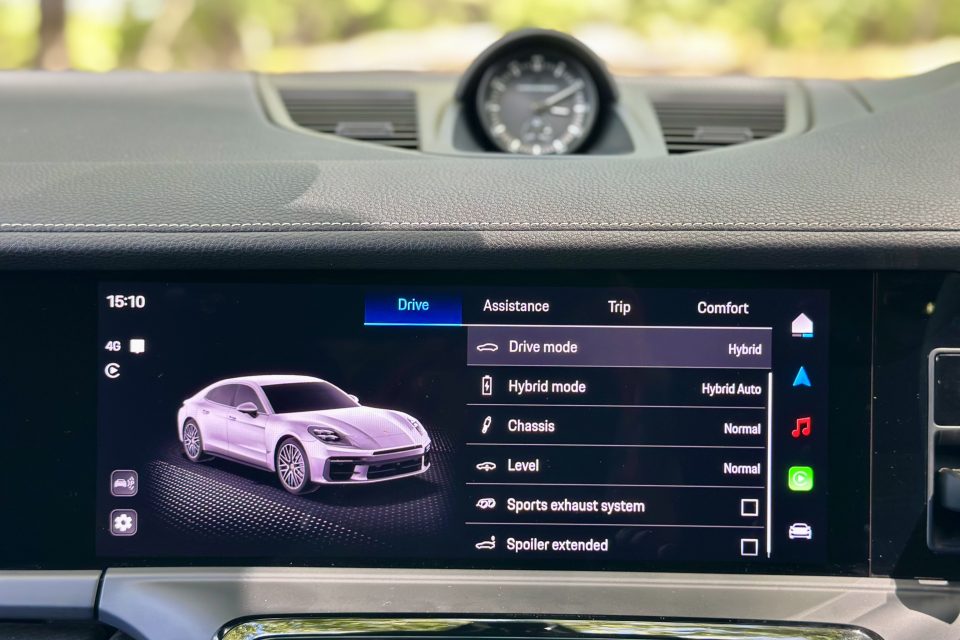 Drive it like your average Toyota hybrid and Porsche claims it’ll use just 2.1 litres of petrol per 100 km. Drive it more like a Porsche, however, and that figure quickly goes to the spreadsheet in the sky. Because there’s still a twin-turbo 4.0-litres V8 under the bonnet and twist the drive-mode dial to sport and it makes itself heard. Deliciously, through fully-open exhaust flaps.