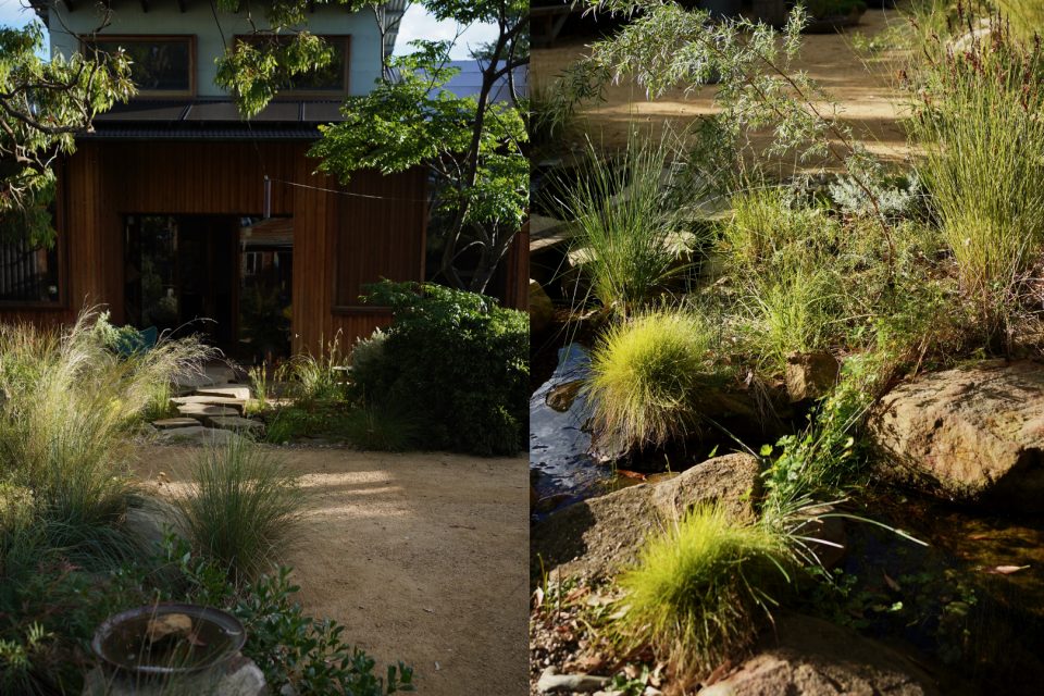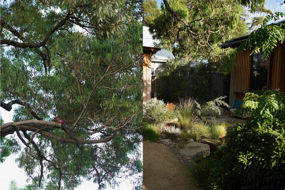 Towering indigenous Eucalyptus paniculata trees dominate the space, left standing as living proof that large trees can — and should — be treasured in residential gardens.