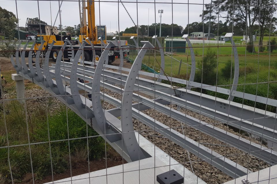 Installation of the new Nautica Crescent bridge to connect Shell Cove and Shellharbour Village. Photos: Kellie O’Brien.