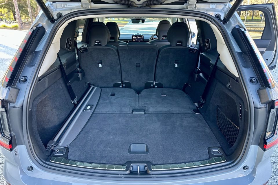 Like the doors that pull themselves closed if you don’t happen to shut them with enough force. And buttons in the boot that electronically raise or lower the two rear-most seats – saving you an uncomfortable trip into the boot on your knees. They also lower the entire rear of the car on its air suspension to make loading and unloading easier.